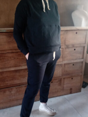 El pantalón Neta es un jogger de tiro medio alto con bolsilllos en costura, cintura elastizada y puños.